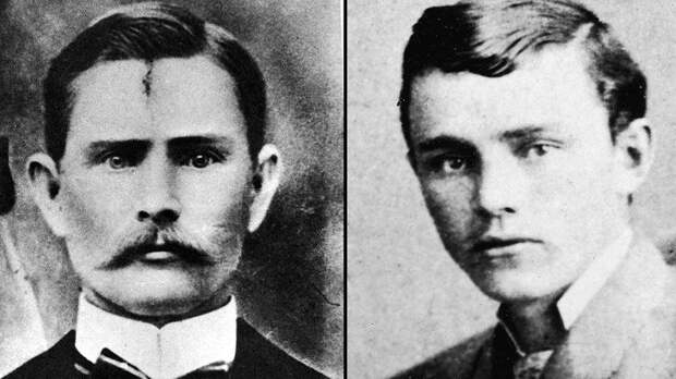 Фотографии: кадр из фильма I Shot Jesse James, 1949 год. На анонсе фотографии Джеси Джеймса (слева) и его убийцы.